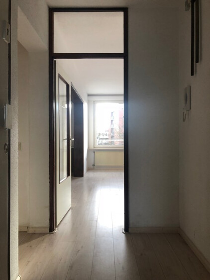 U treedt de woning binnen in de hal, vanwaar u toegang heeft tot het toilet, de woonkamer en eveneens trapopgang naar de bovenverdieping. Het appartement beschikt over een ruime woonkamer (ca. 30m²) met aangrenzend de half-open keuken. De woningen zijn uitgevoerd met een nette keukenopstelling, zonder verdere apparatuur (m.u.v. afzuigkap).