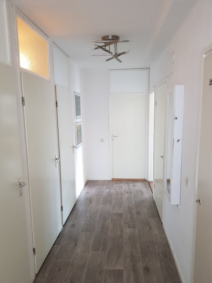 U treedt de woning binnen in de hal, vanwaar via de wenteltrap toegang heeft naar de woonlaag van het appartement.
