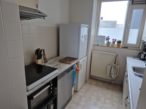 U treedt de woning binnen in de hal, vanwaar u toegang heeft tot het toilet, de woonkamer en eveneens trapopgang naar de bovenverdieping. Het appartement beschikt over een ruime woonkamer (ca. 30 m²) met aangrenzend de half-open keuken. De woonkamer geniet van veel lichtinval door de grote raampartij aan de voorzijde vanwaar men eveneens het balkon kan bereiken. Het appartement is uitgevoerd met een nette keukenopstelling, zonder verdere apparatuur (m.u.v. afzuigkap).
