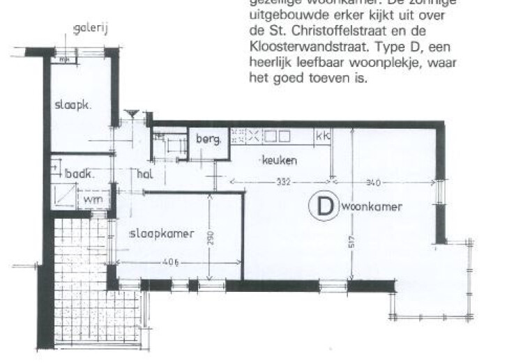 Via de entree aan de galerijzijde bereikt u alle vertrekken van dit 2 slaapkamer appartement. De woning is voorzien van een ruime woonkamer. Hier bevindt zich tevens de open keuken welke is uitgerust met een inbouwoven, elektrische kookplaat en afzuigkap. Aan de straatzijde heeft u de beschikking over een prima balkon/loggia.