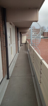 Aan de galerijzijde bevindt zich de slaapkamer van ca 11m2. De badkamer is voorzien van een inloopdouche, vaste wastafel en het toilet. In een separate berging bevindt zich de warmwatervoorziening en tevens de wasmachineaansluiting.