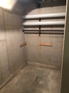 Aan de galerijzijde bevindt zich de slaapkamer met een oppervlakte van circa 12m². De badkamer is voorzien van een inloopdouche, vaste wastafel en het toilet. In een separate berging aangrenzend aan de badkamer bevindt zich de warmwatervoorziening en tevens de wasmachineaansluiting.