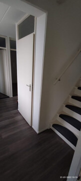 Middels de trap in de hal is de bovenverdieping bereikbaar.