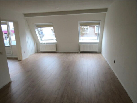 Na trap opkomst komt u terecht in de L-vormige hal vanwaar u toegang heeft tot alle vertrekken van dit speels ingedeelde appartement. Allereerst bereikt u de ruime woonkamer (ca. 32m²) met een 2 tal velux dakramen. De woonkamer staat in half-open verbinding met de keuken. Aangrenzend bevindt zich de eerste slaapkamer (ca. 12,5m²) met bergkast. Vanuit deze slaapkamer heeft u toegang tot uw loggia c.q. balkon.