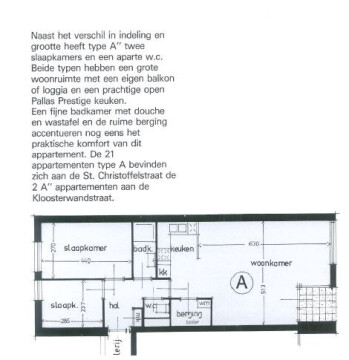 Entree/hal met toegang naar alle vertrekken. Het appartement is voorzien van een ruime woonkamer met tevens toegang tot de loggia. Aangrenzend is de keuken in hoekopstelling gesitueerd welke is voorzien van een oven, 4 pits fornuis en afzuigkap. De badkamer is voorzien van een ligbad en wastafel, separaat toilet, berging met wasmachine aansluiting en 2 slaapkamers van respectievelijk 11m2 en 10m2.