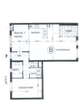 Bij binnenkomst is aan de linkerhand de entree naar een kamer, die in te richten is als tweede slaapkamer, eetkamer of werkkamer. Gaat u rechtdoor in de hal, dan komt u in de ruime woonkamer met open keuken in hoekopstelling welke is voorzien van een oven, 4 pits fornuis en afzuigkap. Vanuit de woonkamer heb je eveneens toegang tot de loggia van ca 3 m2.
